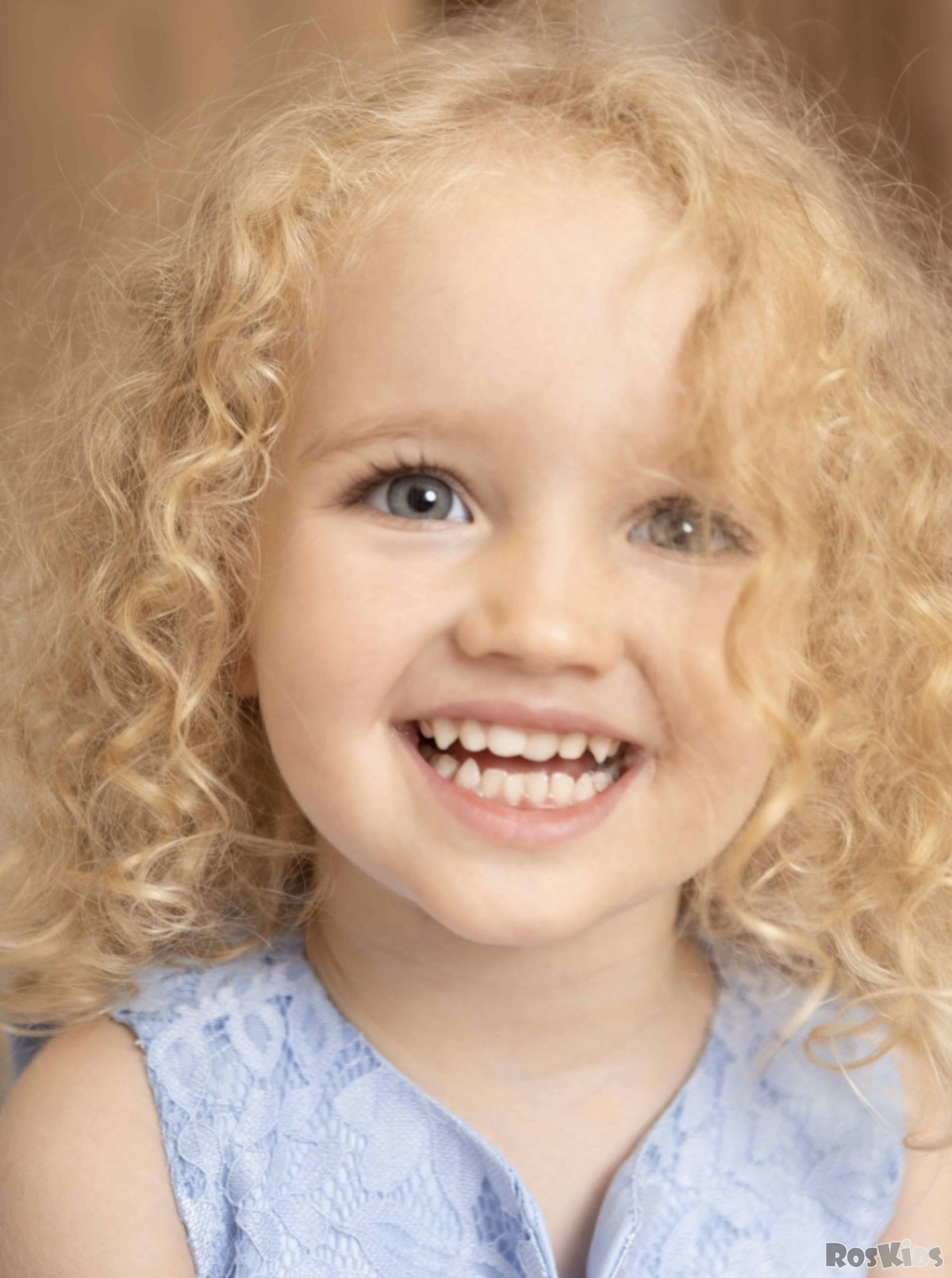 Хорошо разговаривает, знает много стихов наизусть. Фотографироваться любит, слушает и выполняет просьбы фотографа, спокойная, усидчивая, скромная.